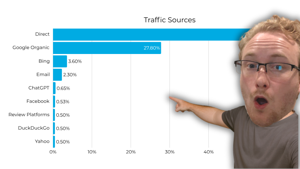 What I find interesting: ChatGPT punches well above its weight for conversions compared to traffic, which tells me ChatGPT traffic has high commercial intent. Not exactly surprising, though.